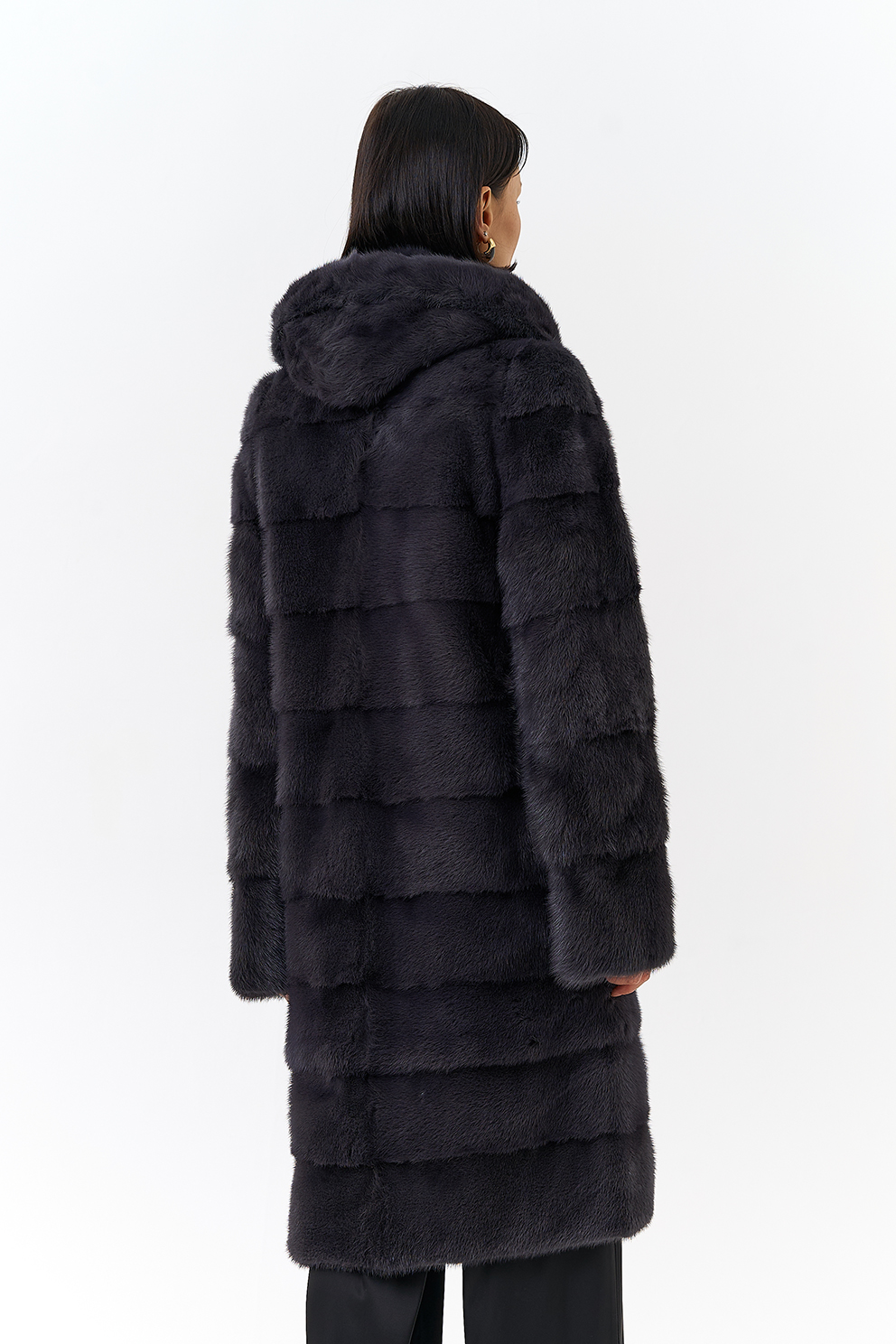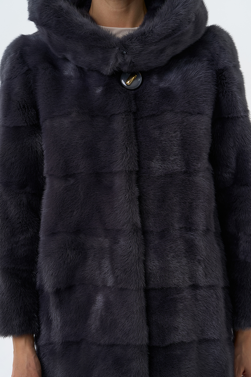 Норковая шуба трансформер в поперечном крое с капюшоном в цвете графит. Каждый день новая модель! Длина изделия трансформируется до 80 см,а рукав до длины ⅞. Шуба дополнена аккуратными пуговицами и крючками.